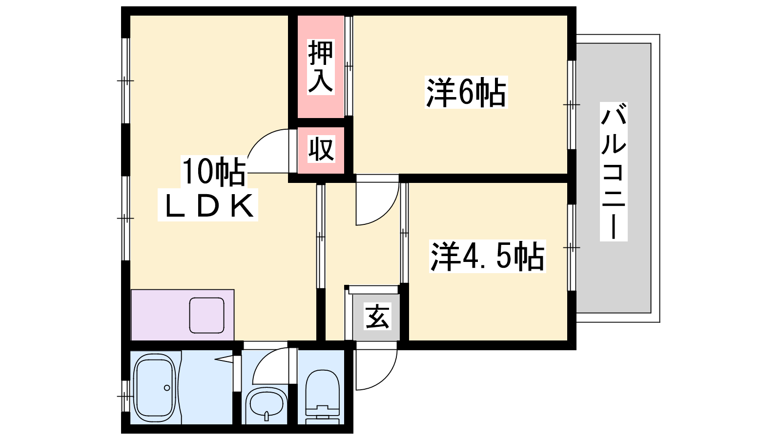 - LDK10帖、洋室4.5帖、洋室6帖