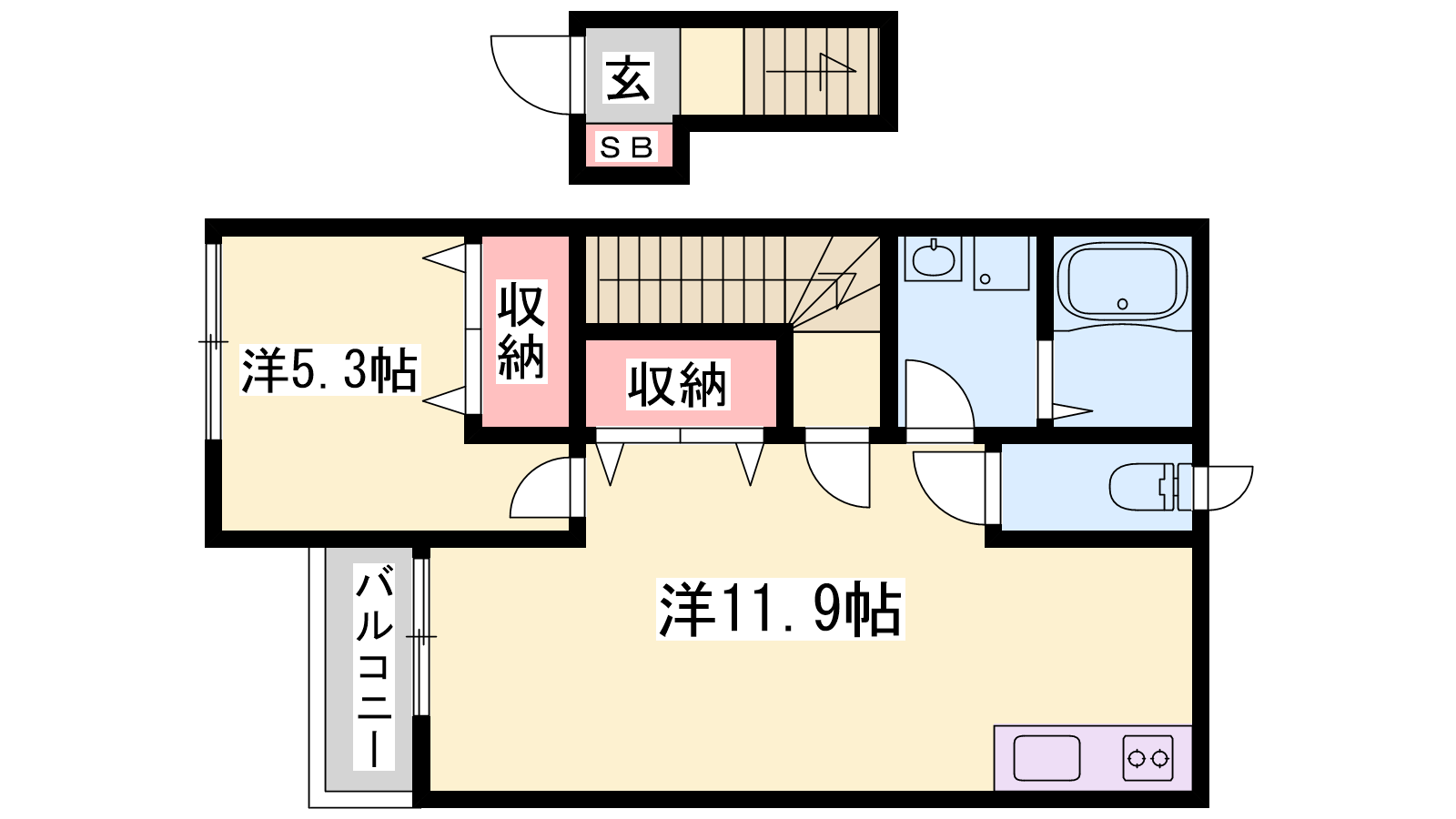 - LDK11.9帖、洋室5.3帖