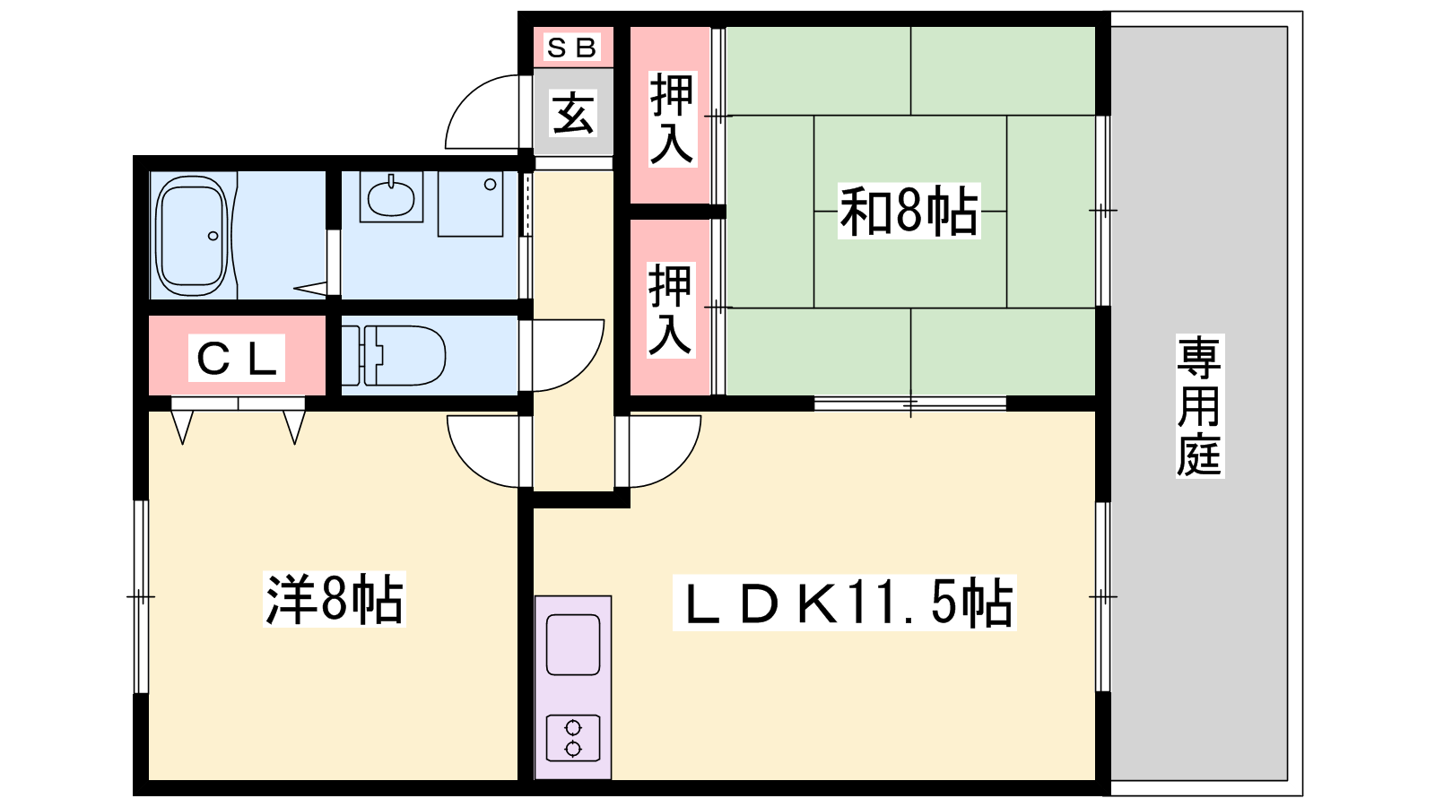- LDK11.5帖、洋室8帖、和室8帖