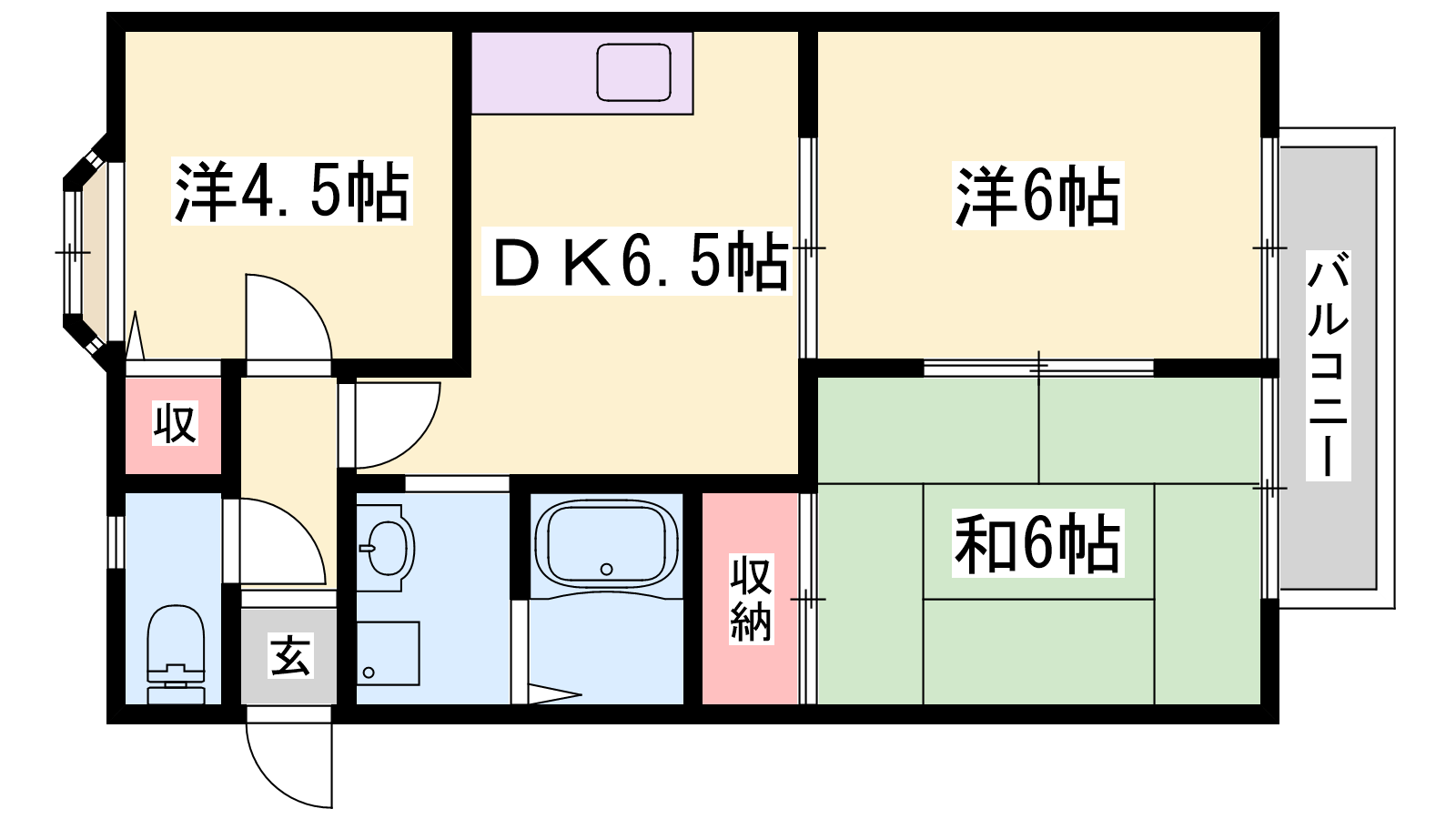 - DK6.5帖、洋室6帖、洋室4.5帖、和室6帖