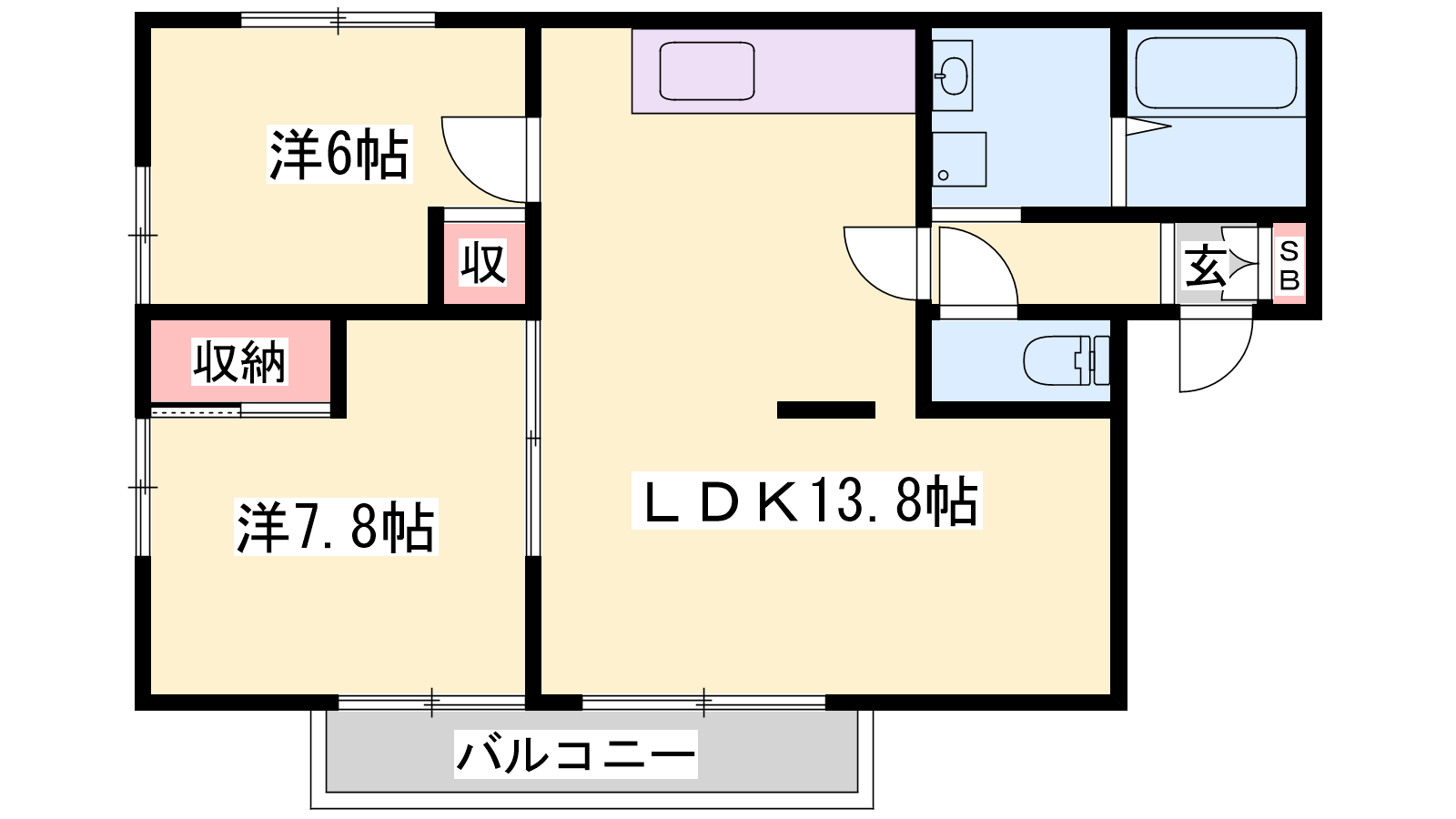 - LDK13.8帖、洋室7.8帖、洋室6帖