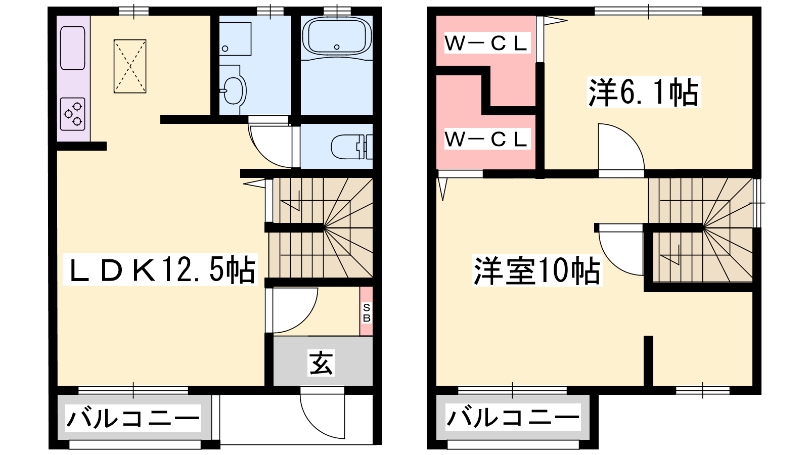 - DK12.5帖、洋室10帖、洋室6.1帖