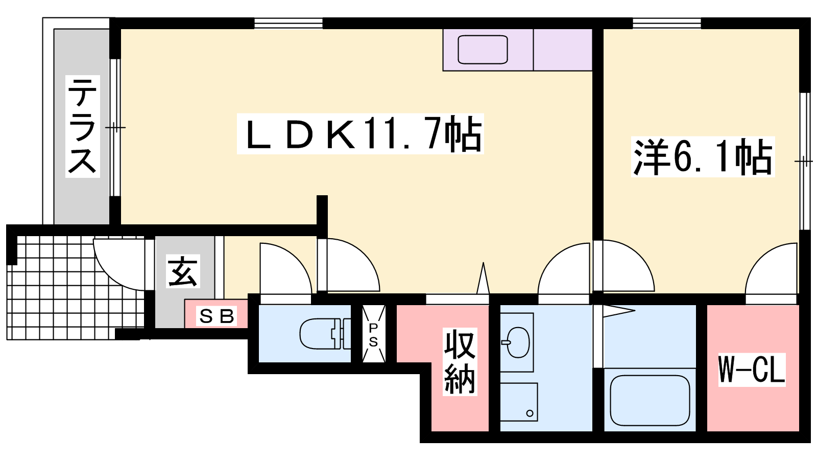 - LDK11.7帖、洋室6.1帖