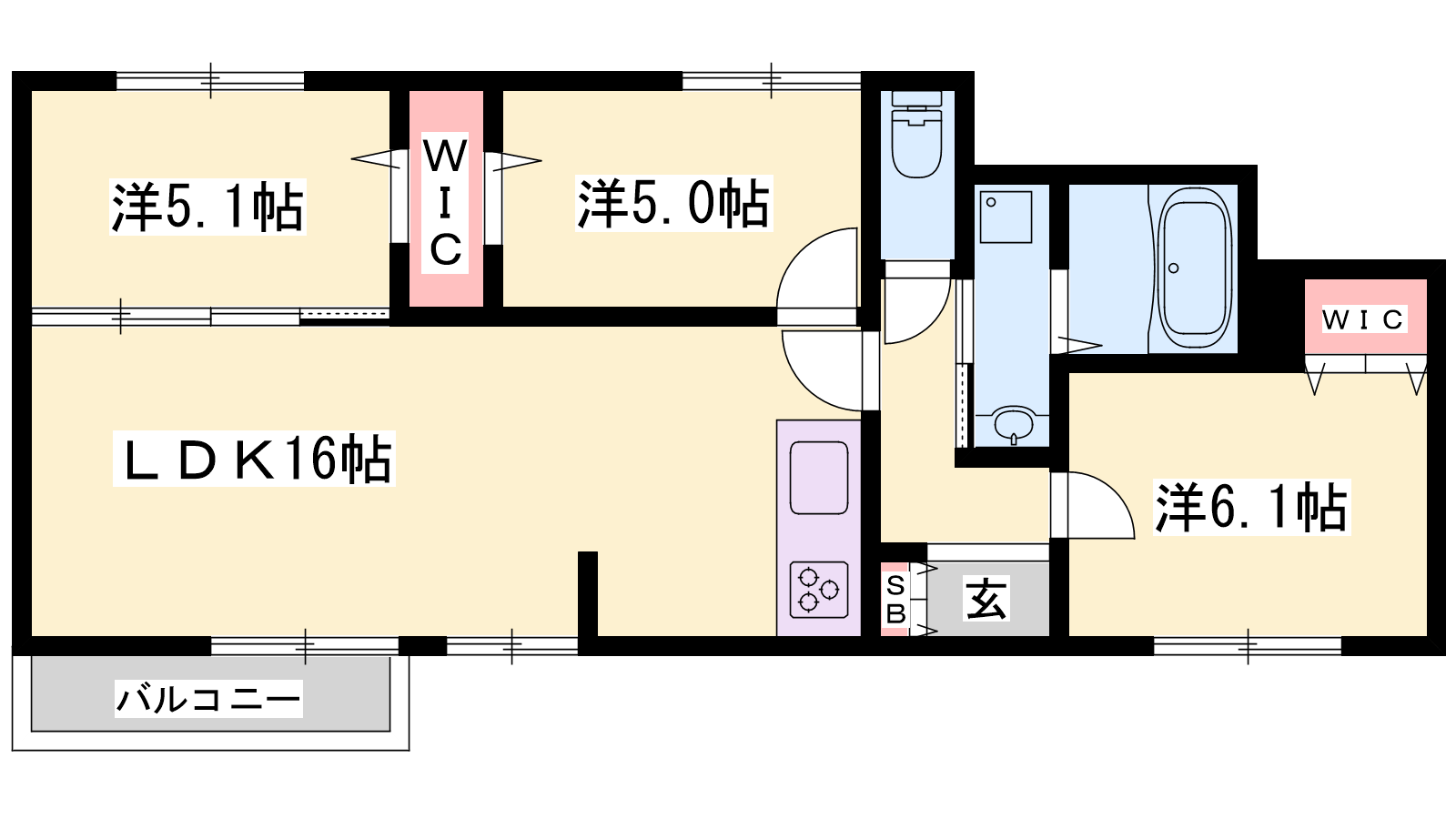 - LDK16帖、洋室6.1帖、洋室5.1帖、洋室5帖