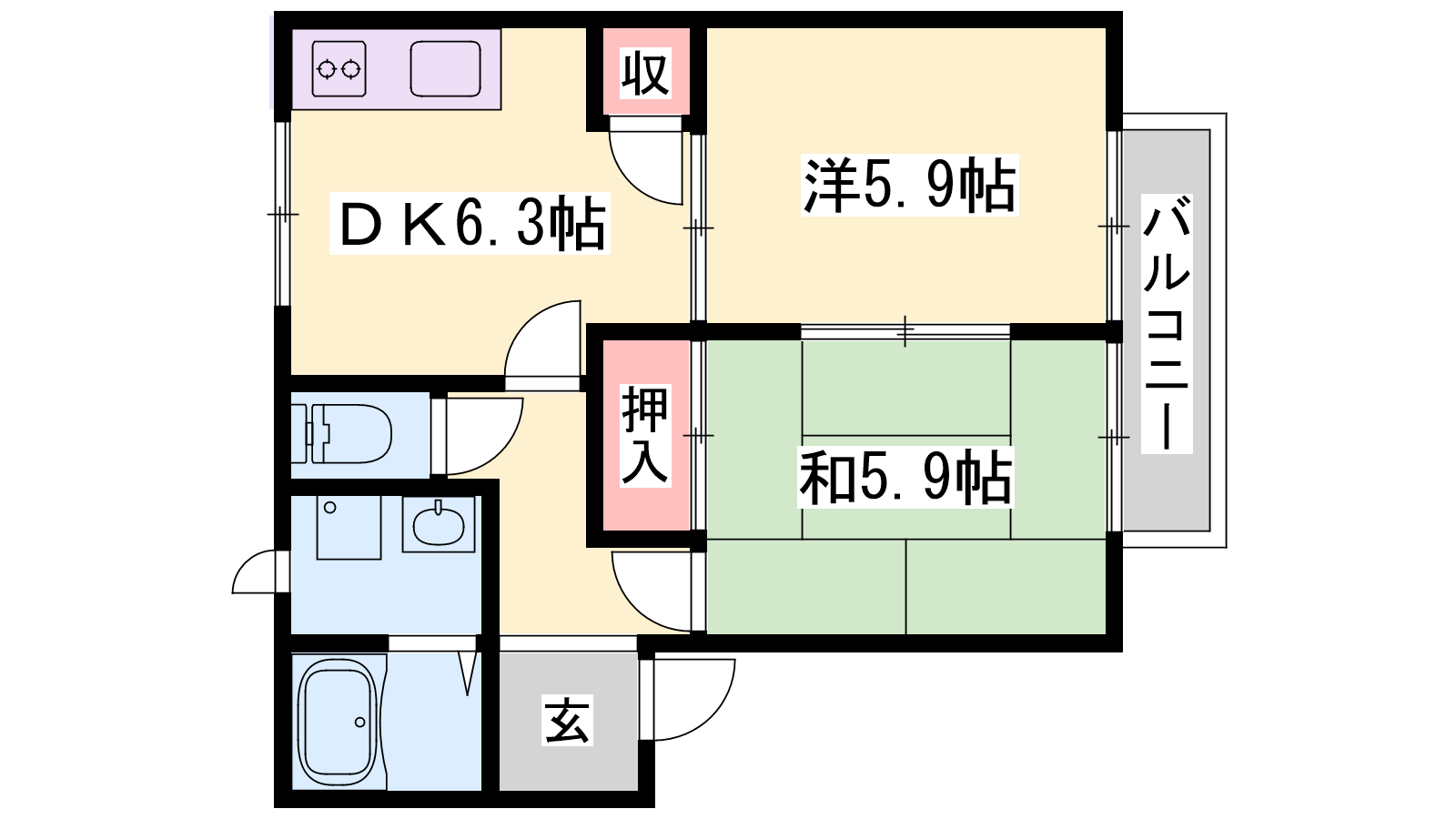 - DK6.3帖、洋室5.9帖、和室5.9帖