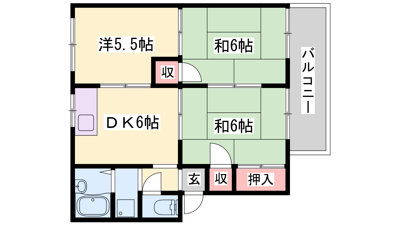 - DK6帖、洋室5.5帖、和室6帖、和室6帖