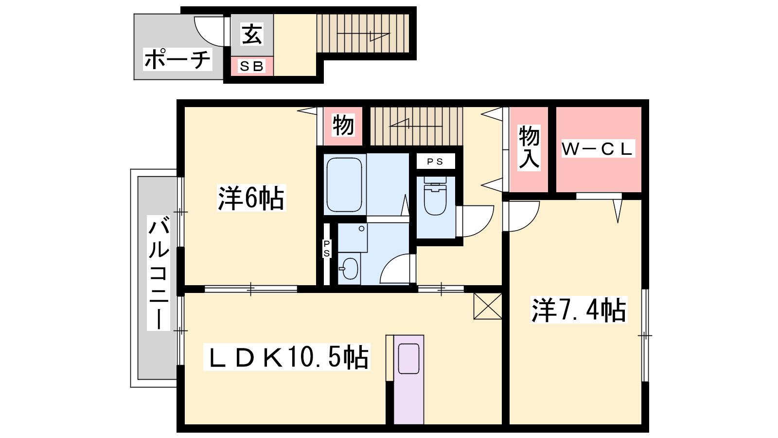 - LDK10.5帖、洋室6帖、洋室7.4帖