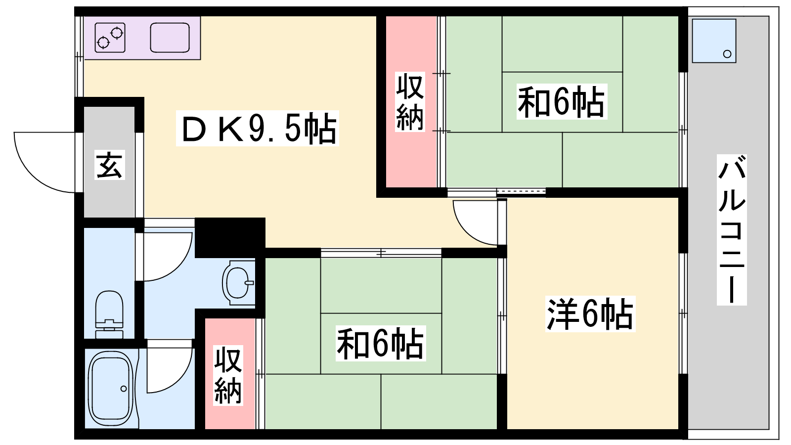 - DK9.5帖、洋室6帖、和室6帖、和室6帖