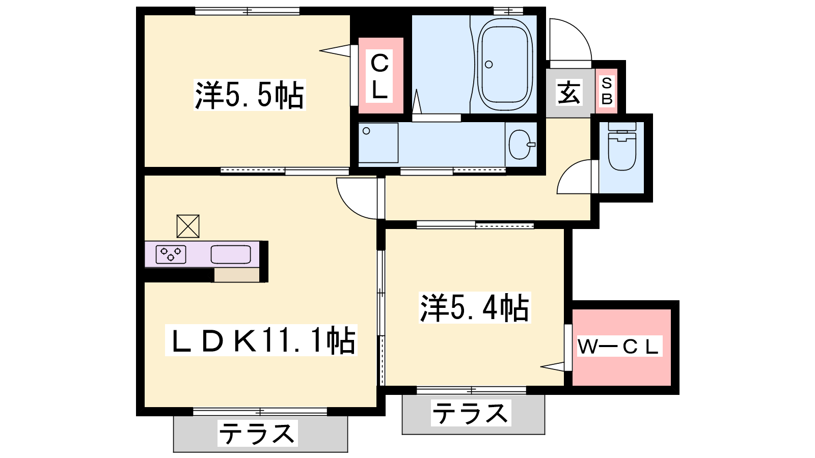- LDK11.1帖、洋室5.5帖、洋室5.4帖