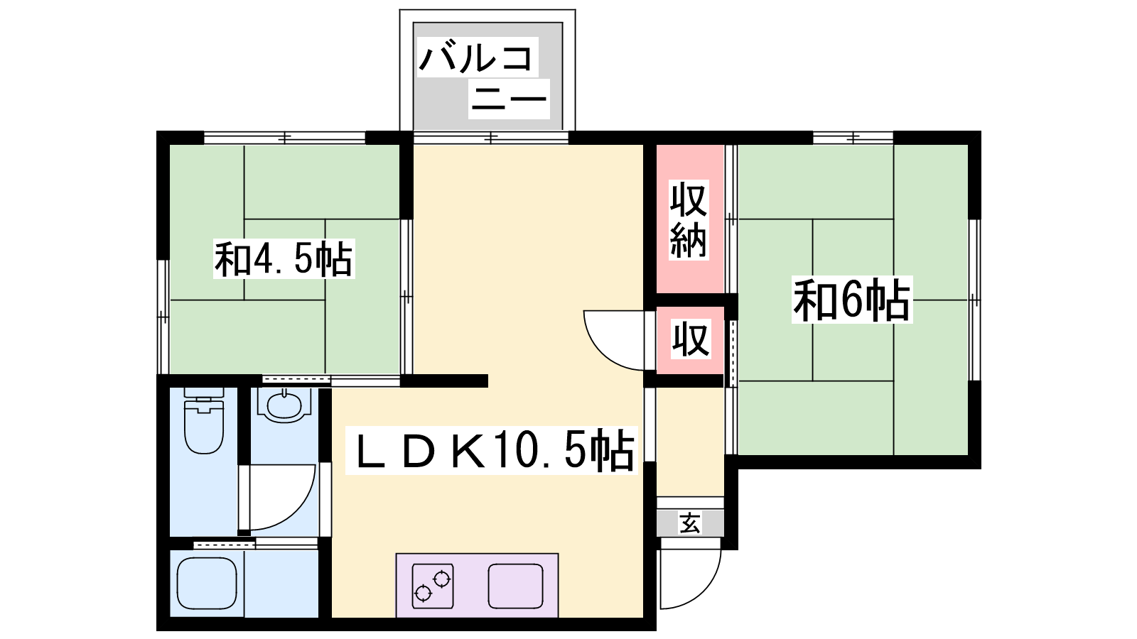 - LDK10.5帖、和室6帖、和室4.5帖