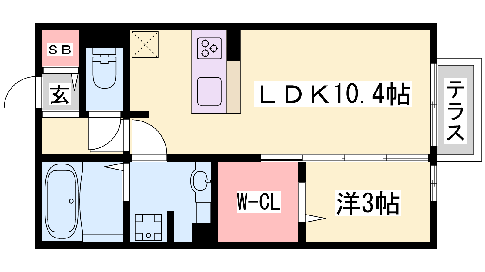 - LDK10.4帖、洋室3帖