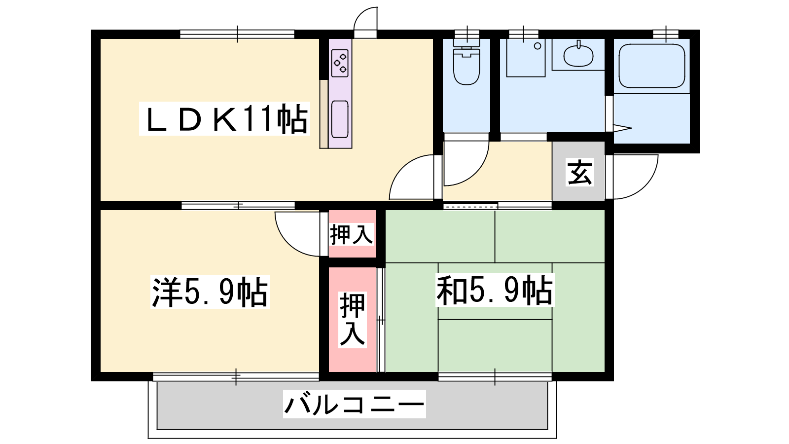 - LDK11帖、洋室5.9帖、和室5.9帖
