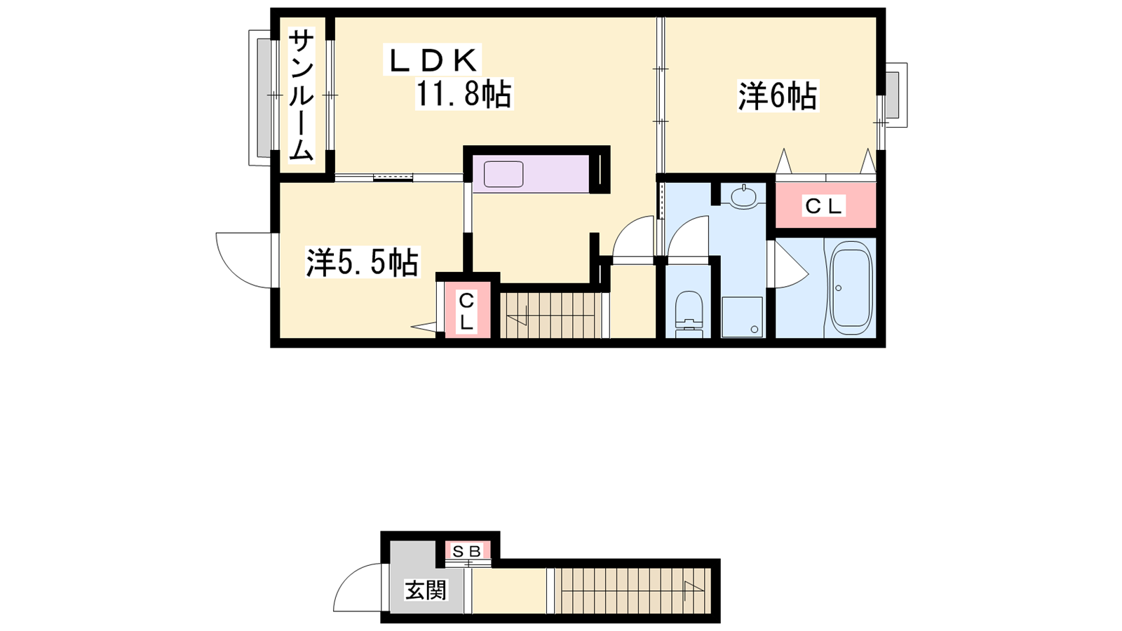 - LDK11.8帖、洋室6帖、洋室5.5帖