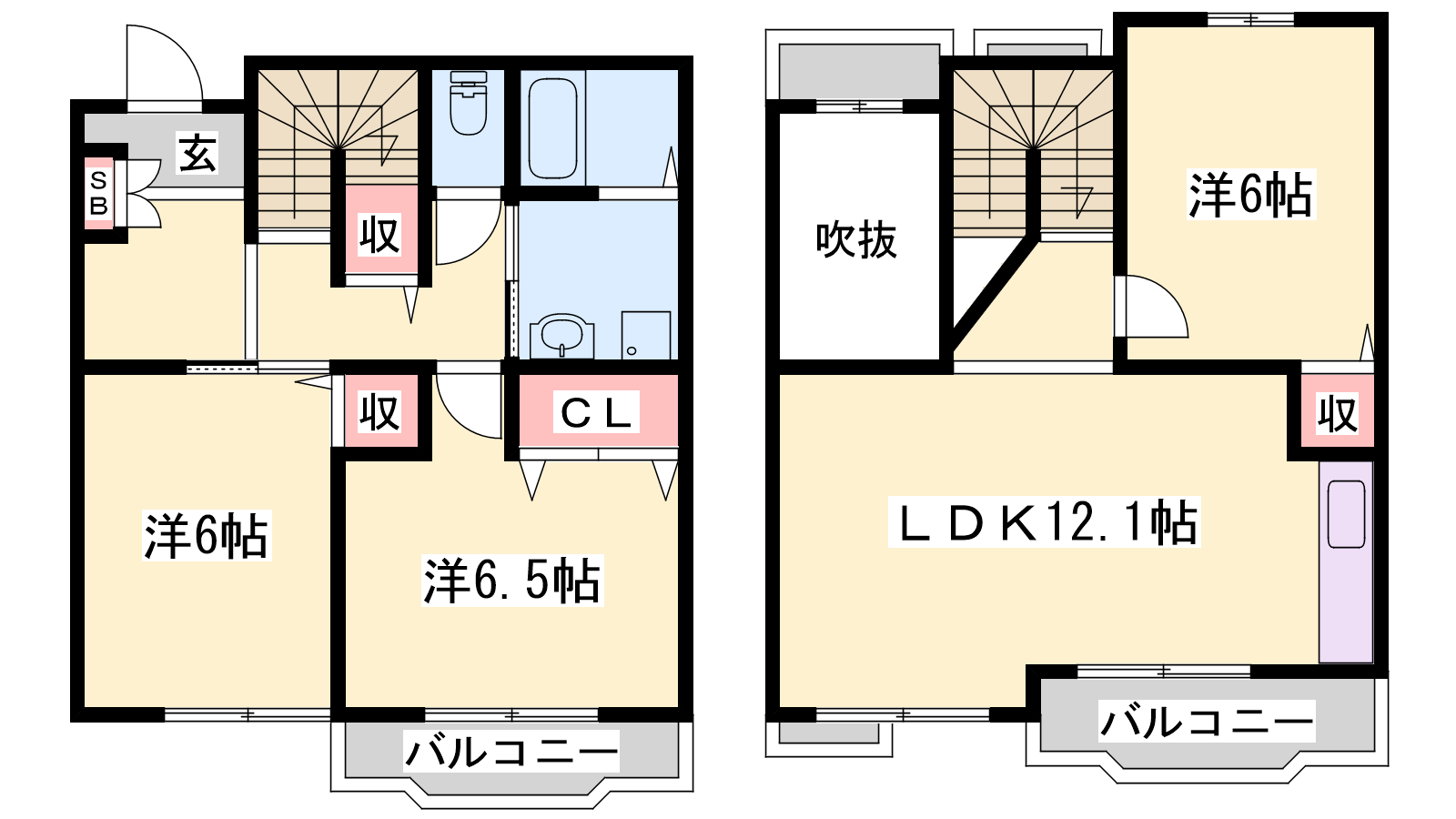 - LDK12.1帖、洋室6.5帖、洋室6帖、洋室6帖