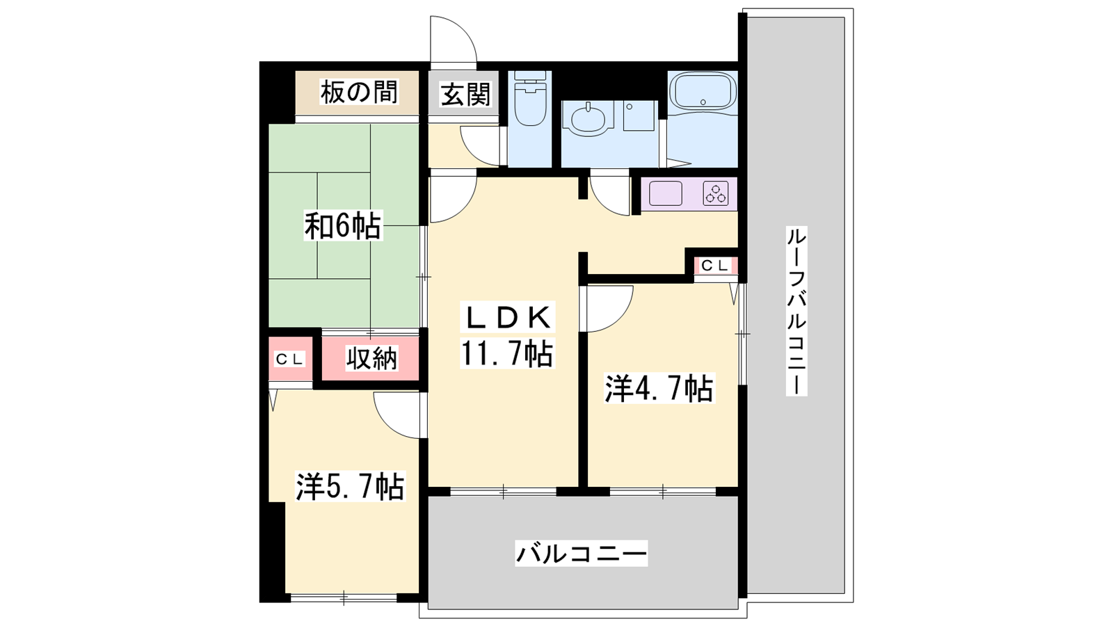 - LDK11.7帖、洋室5.7帖、洋室4.7帖、和室6帖