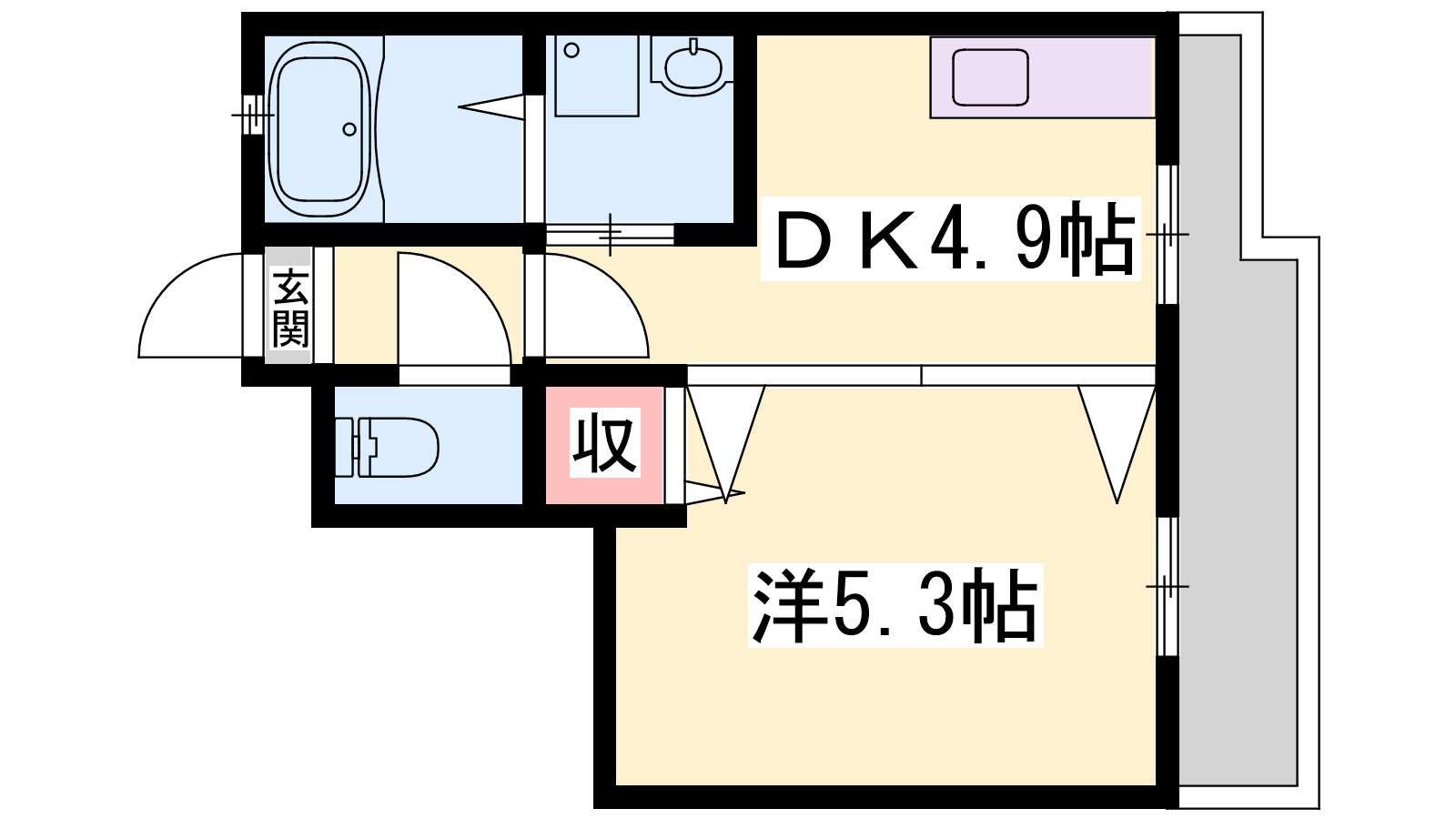 - DK4.9帖、洋室5.3帖