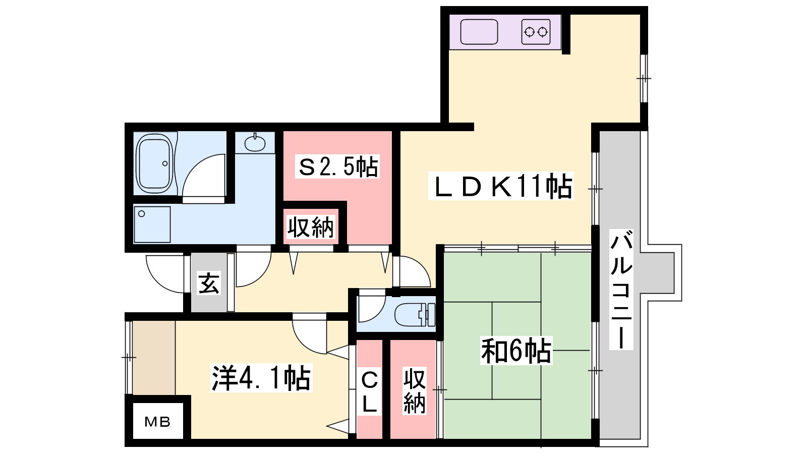 - LDK11帖、和室6帖、洋室4.1帖、S2.5帖