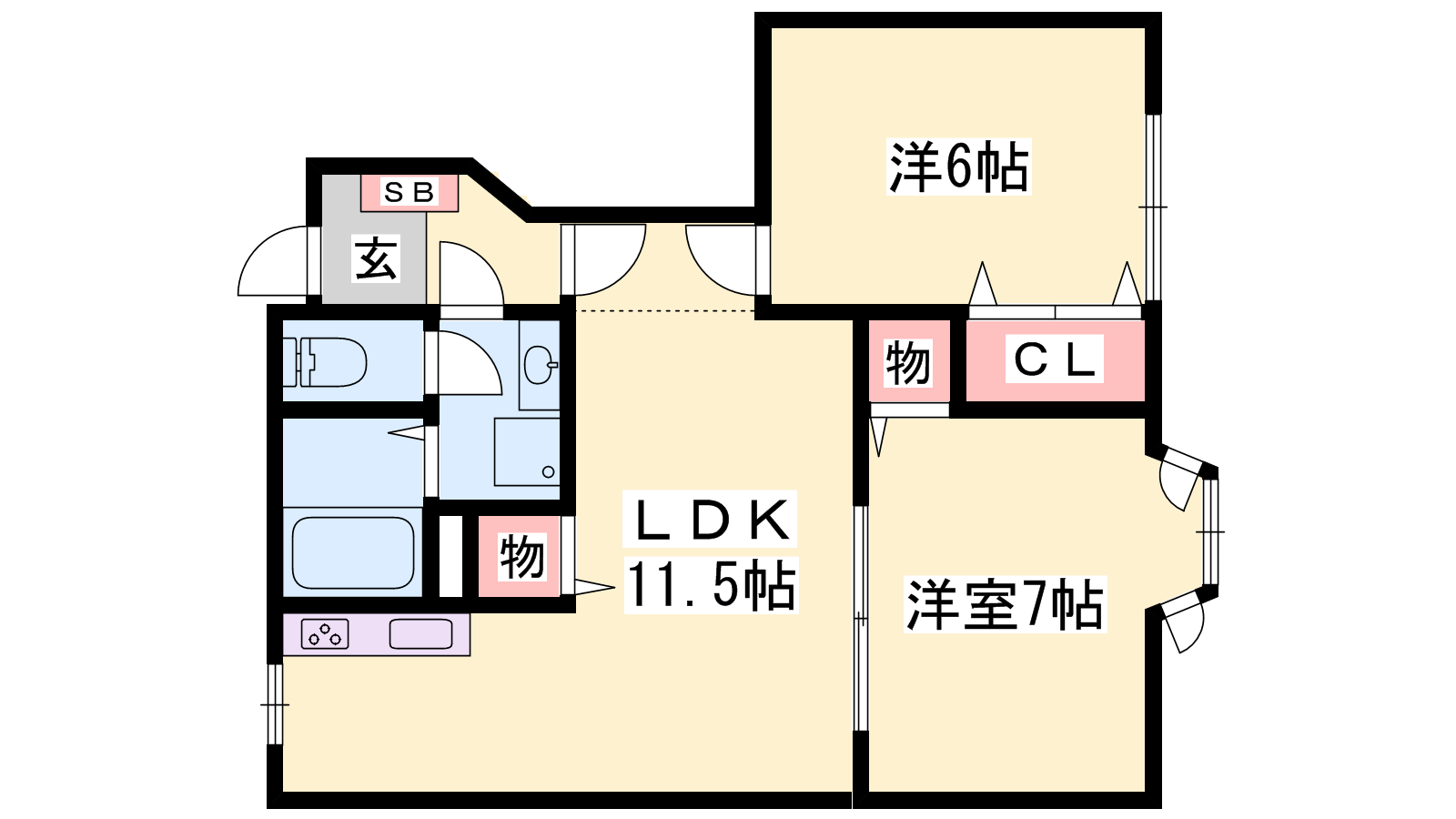 - LDK11.5帖、洋室7帖、洋室6帖
