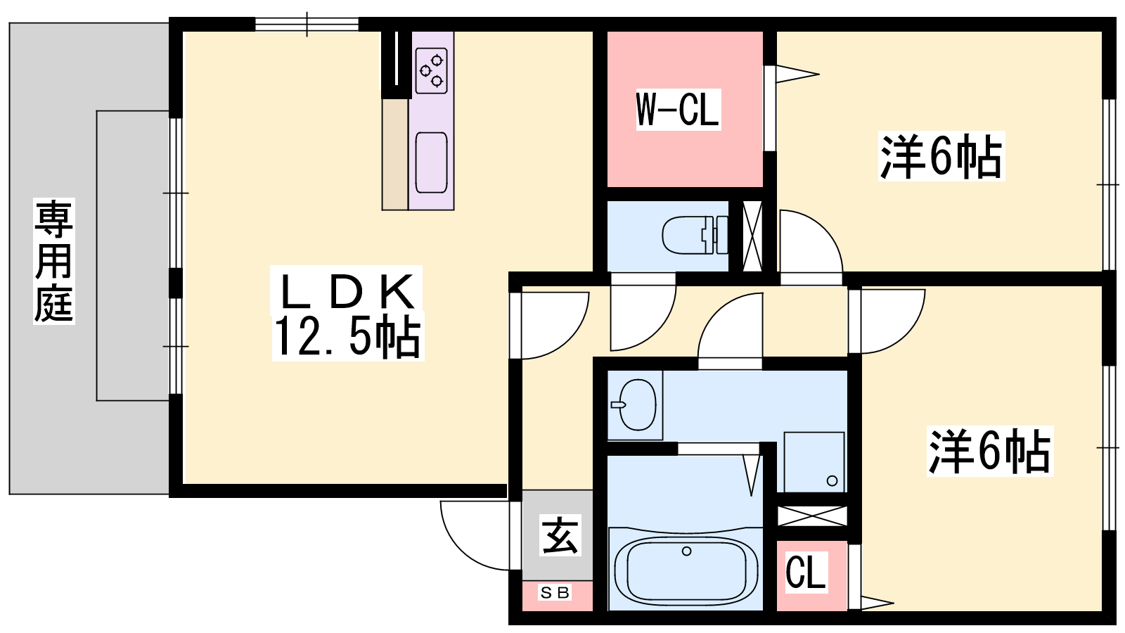 - LDK12.5帖、洋室6帖、洋室6帖