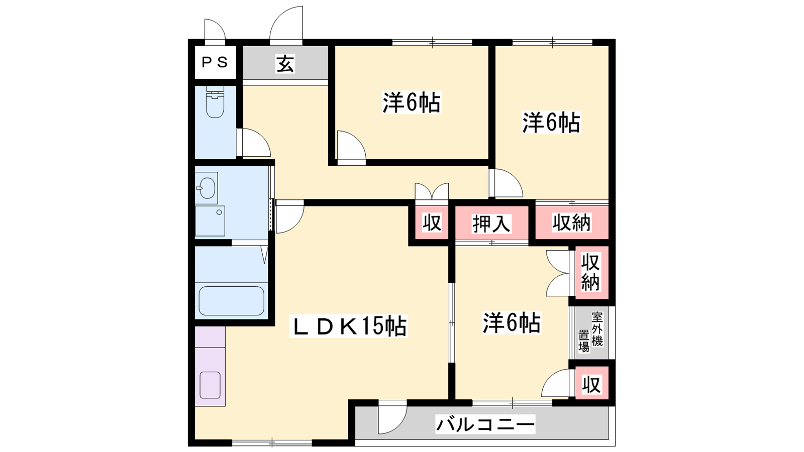 - LDK15帖、洋室6帖、洋室6帖、洋室6帖