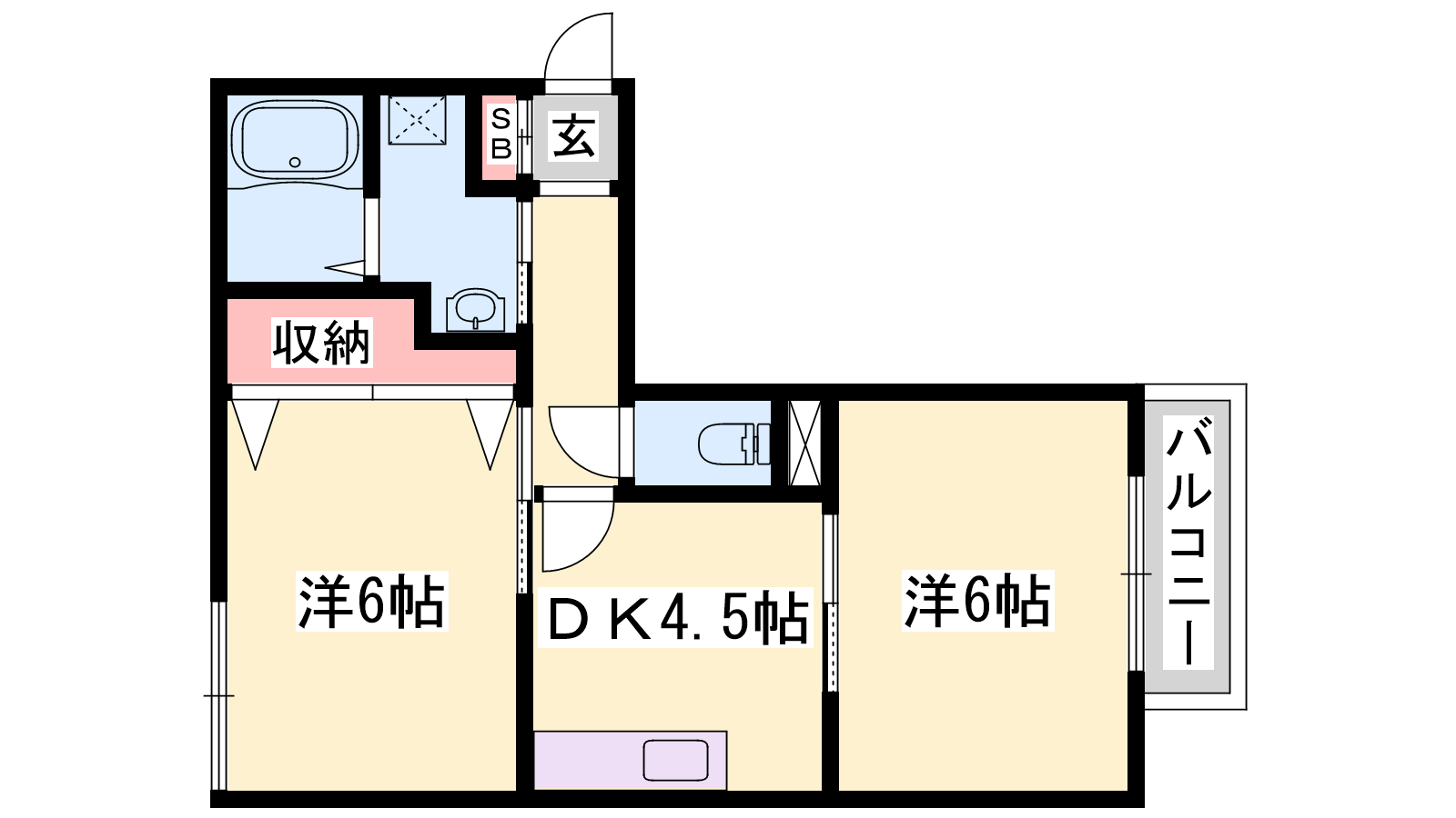- DK4.5帖、洋室6帖、洋室6帖