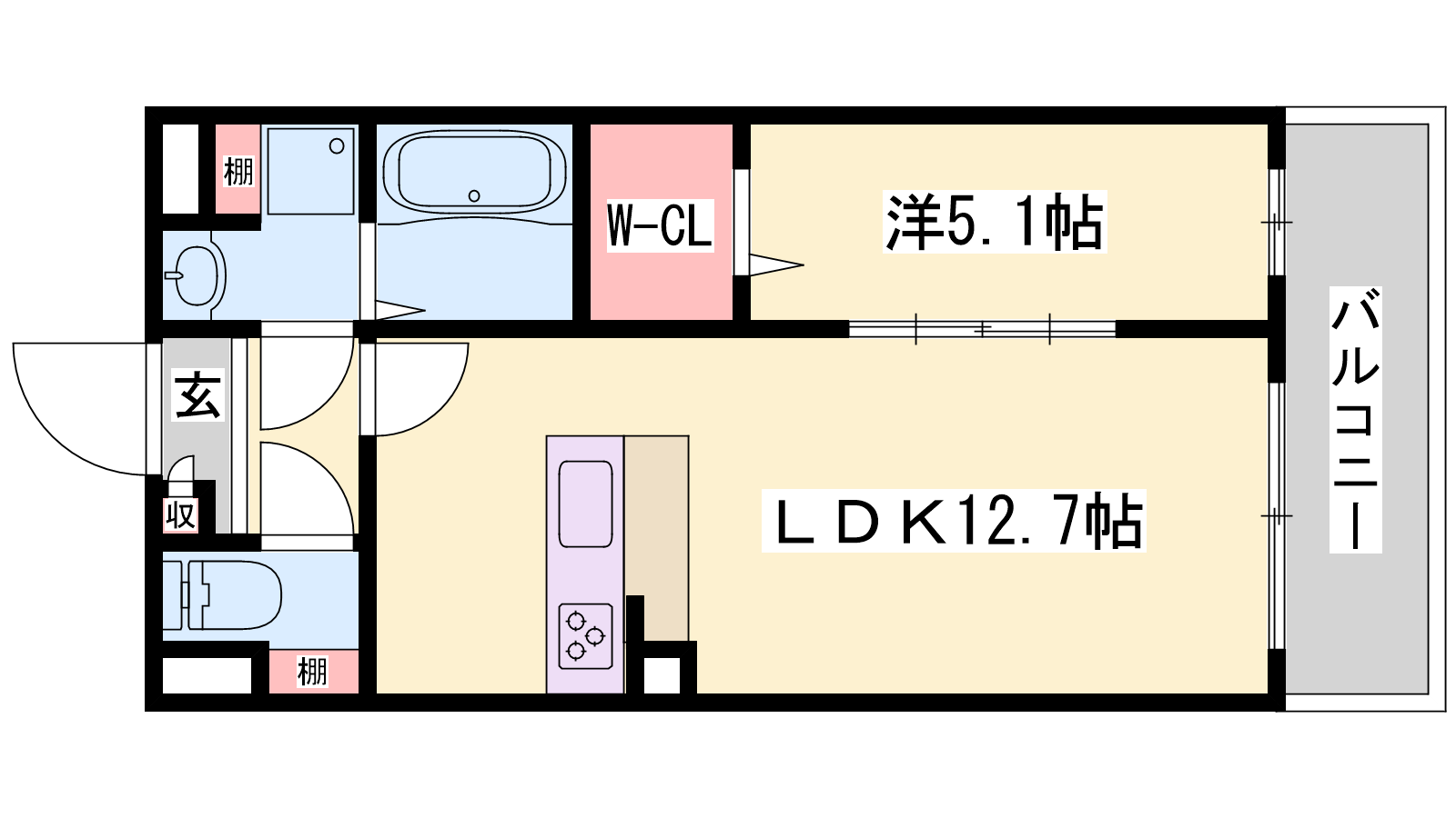 - LDK12.7帖、洋室5.1帖
