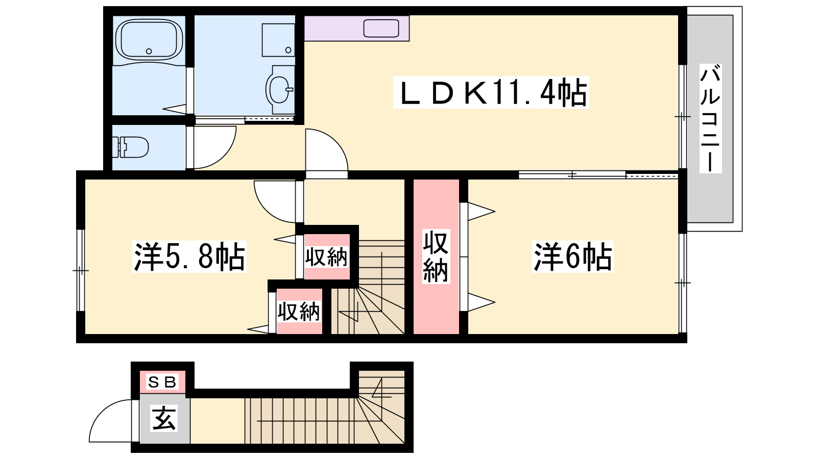 - LDK11.4帖、洋室6帖、洋室5.8帖