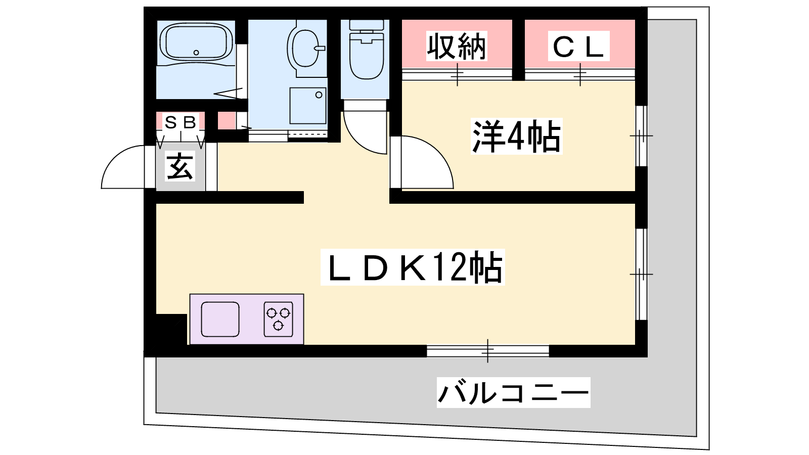 - LDK12帖、洋室4帖