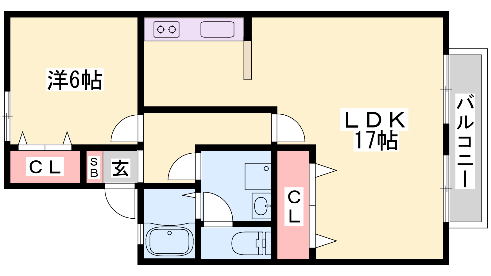 - LDK17帖、洋室6帖