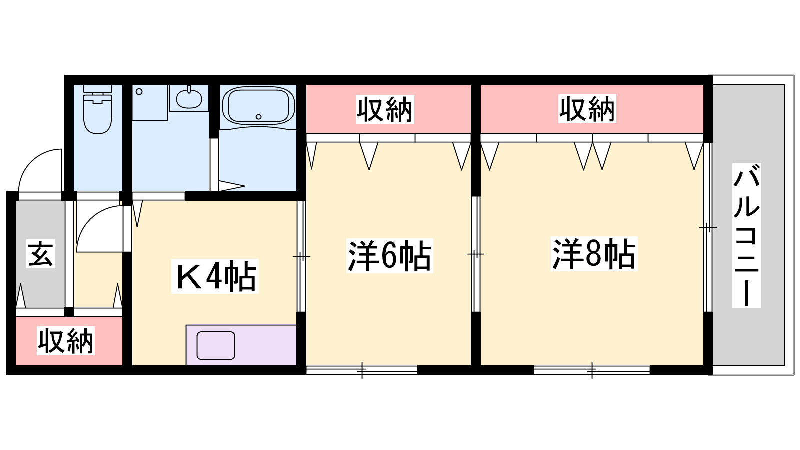 - K4帖、洋室6帖、洋室8帖
