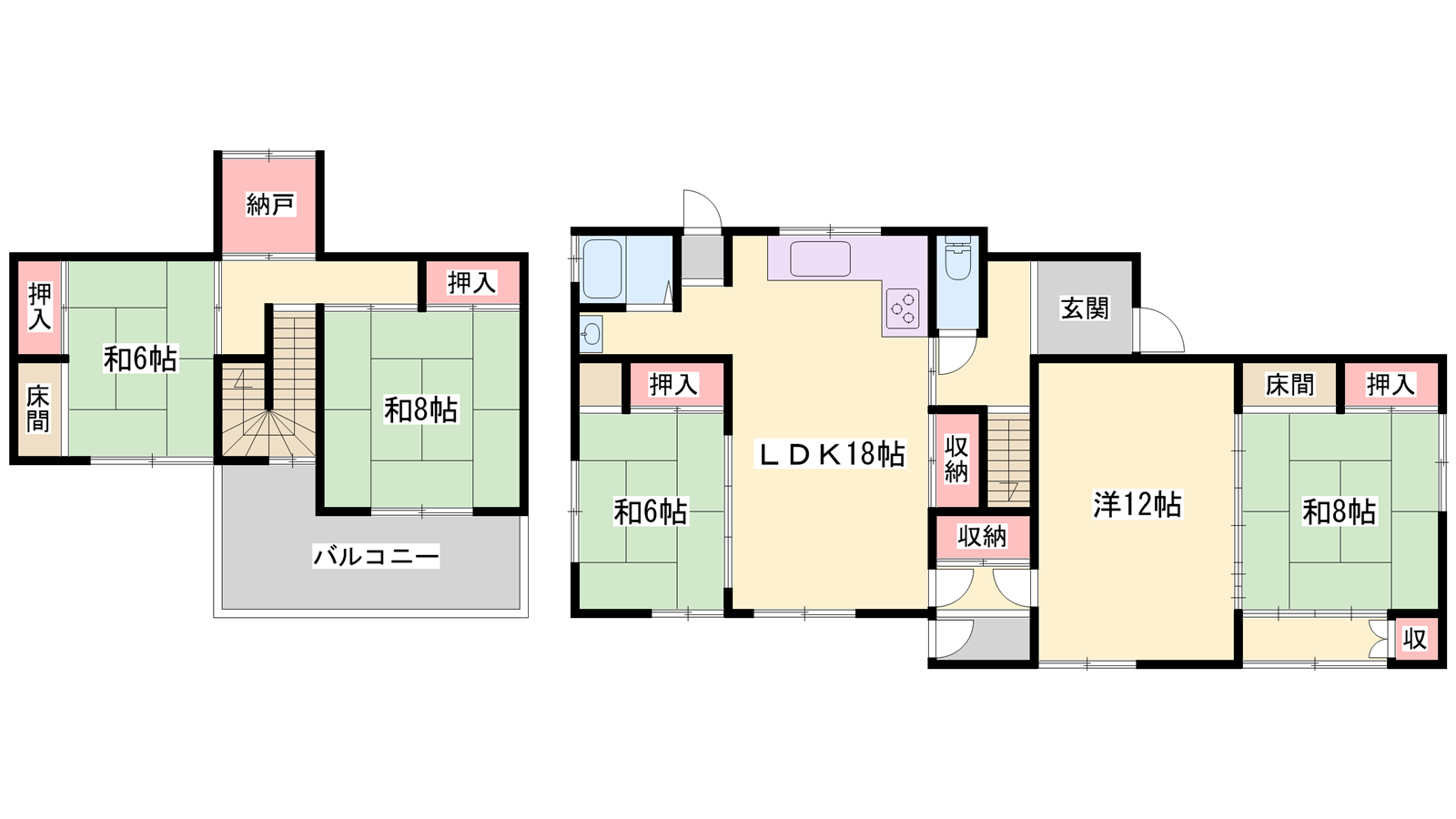 - LDK18帖、洋室12帖、和室8帖、和室8帖、和室6帖、和室6帖