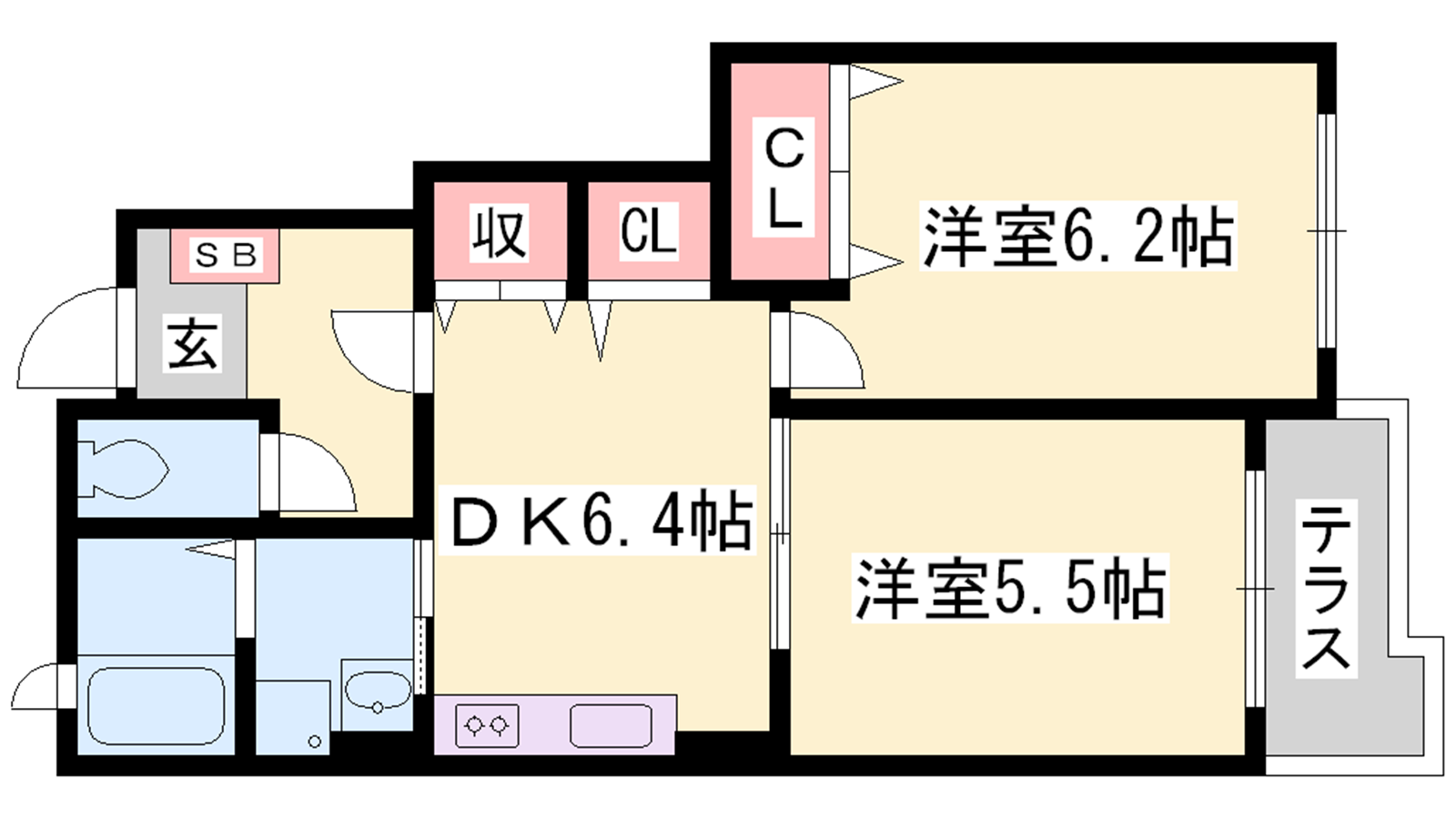 - DK6.4帖、洋室6.2帖、洋室5.5帖