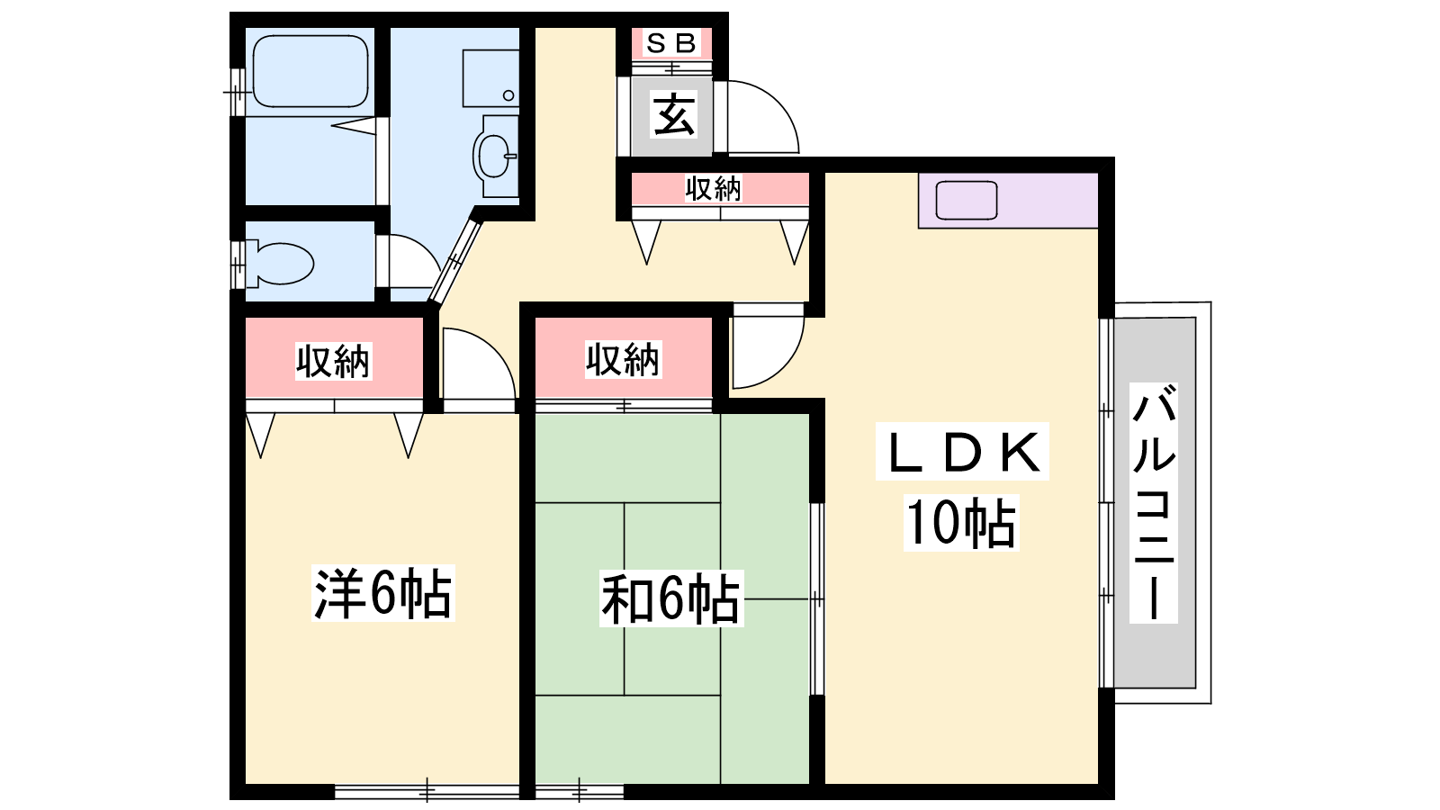 - LDK10帖、洋室6帖、和室6帖