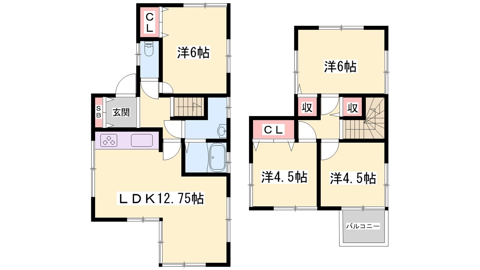 - LDK12.7帖、洋室6帖、洋室6帖、洋室4.5帖、洋室4.5帖