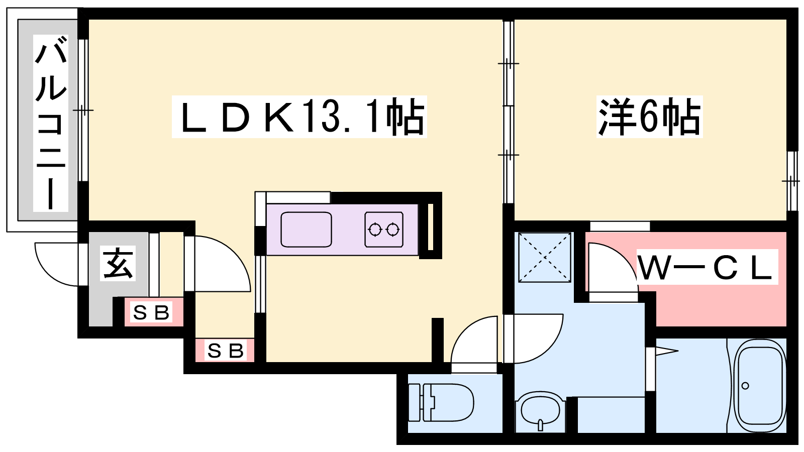 - LDK13.1帖、洋室6帖