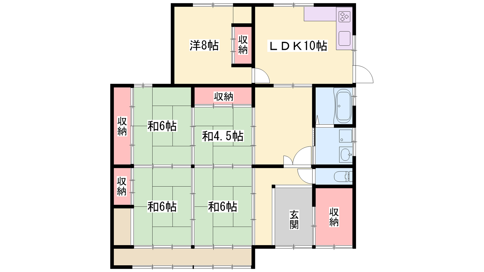 - LDK10帖、洋室8帖、和室6帖、和室6帖、和室6帖、和室6帖