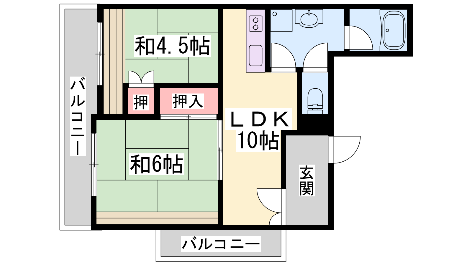 - LDK10帖、和室6帖、和室4.5帖