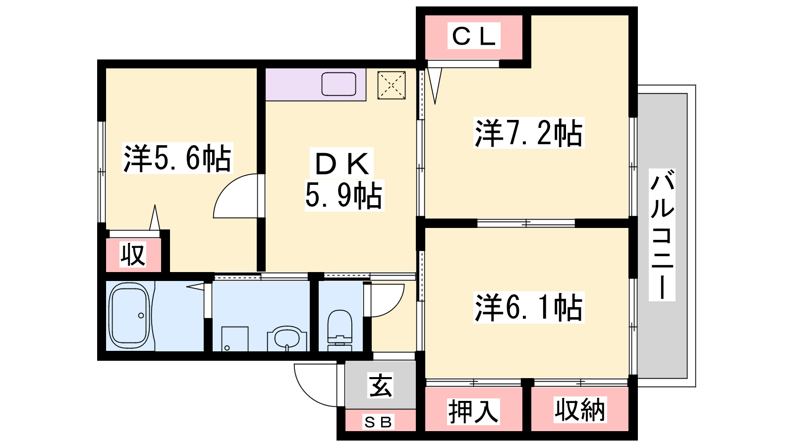 - DK5.9帖、洋室7.2帖、洋室6.1帖、洋室5.6帖