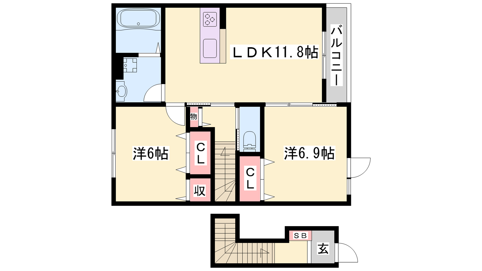 - LDK11.8帖、洋室6.9帖、洋室6帖