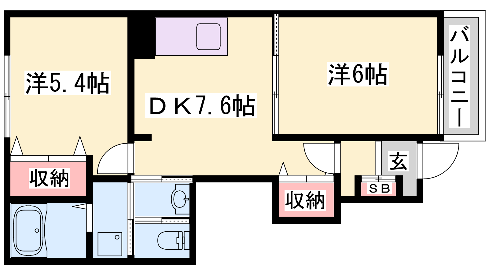 - DK7.6帖、洋室6帖、洋室5.4帖