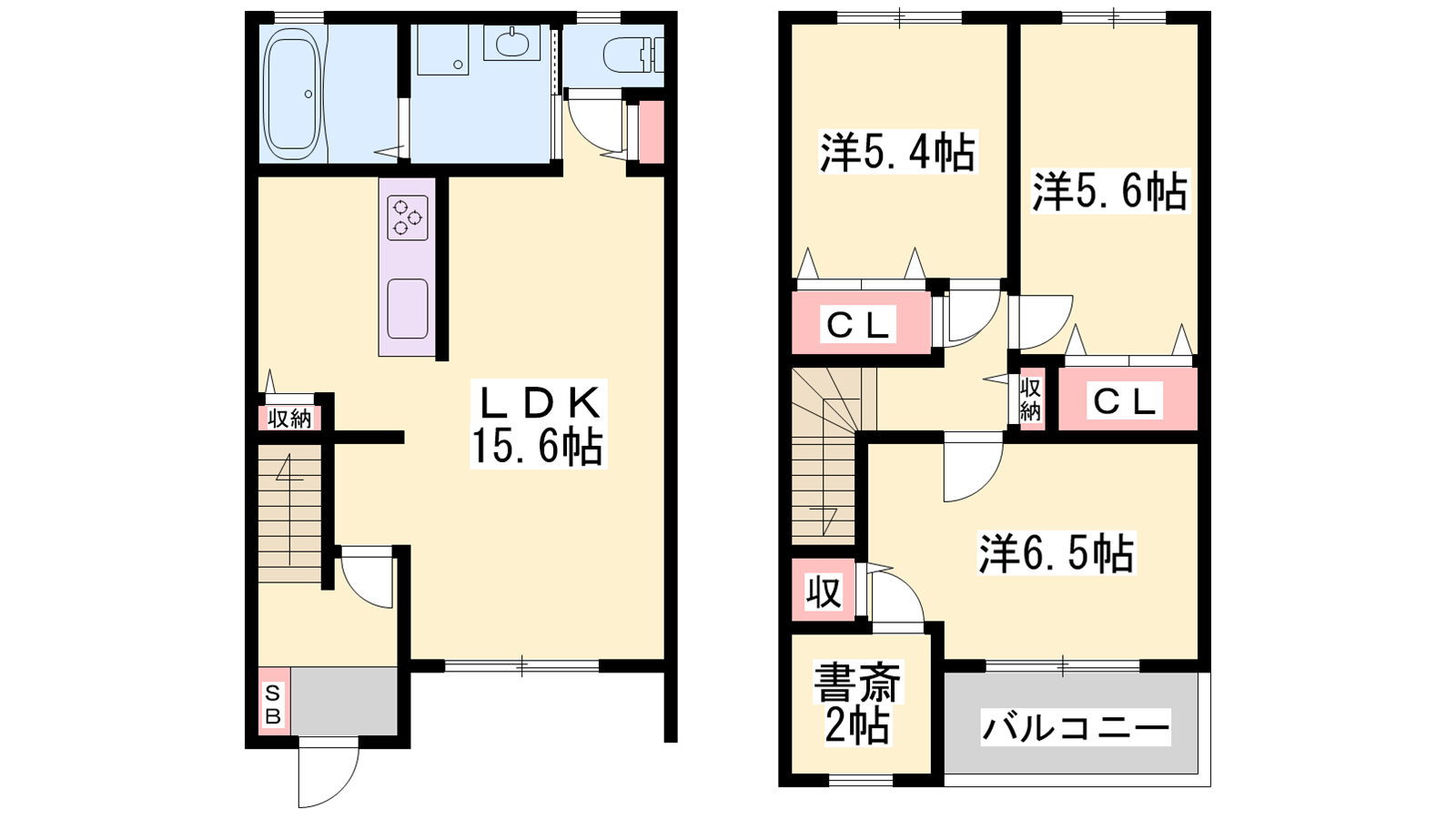 - LDK15.6帖、洋室6.5帖、洋室5.6帖、洋室5.4帖