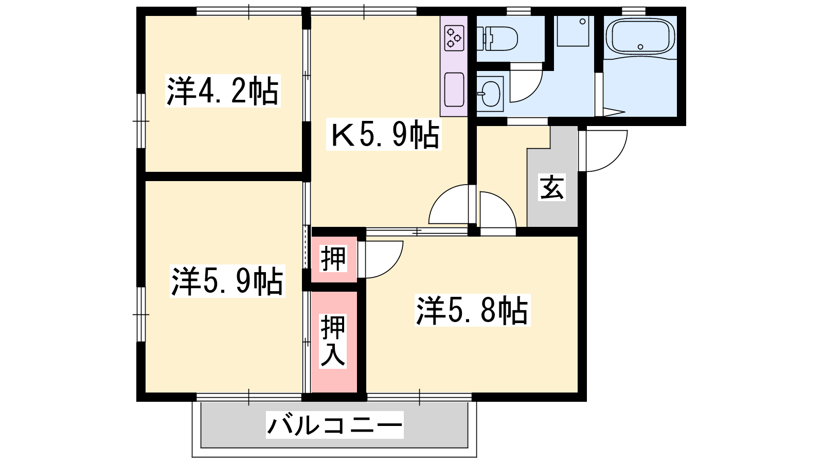 - K5.9帖、洋室5.9帖、洋室5.8帖、洋室4.2帖