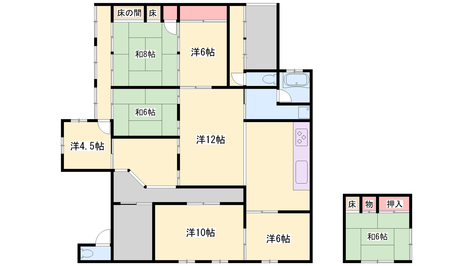 - LDK11帖、洋室12帖、洋室10帖、洋室6帖、洋室6帖、洋室4.5帖、和室8帖