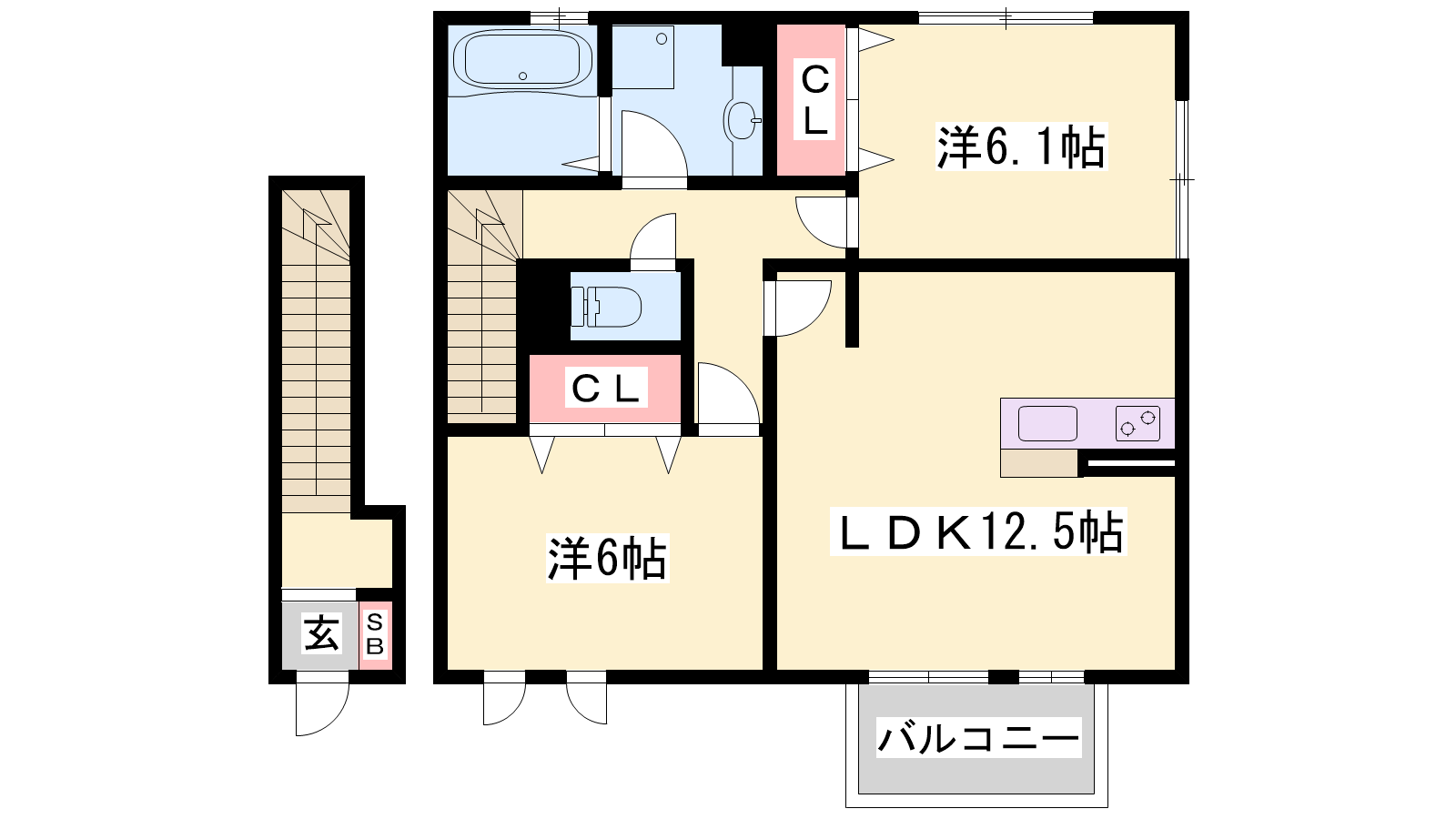 - LDK12.5帖、洋室6.1帖、洋室6帖
