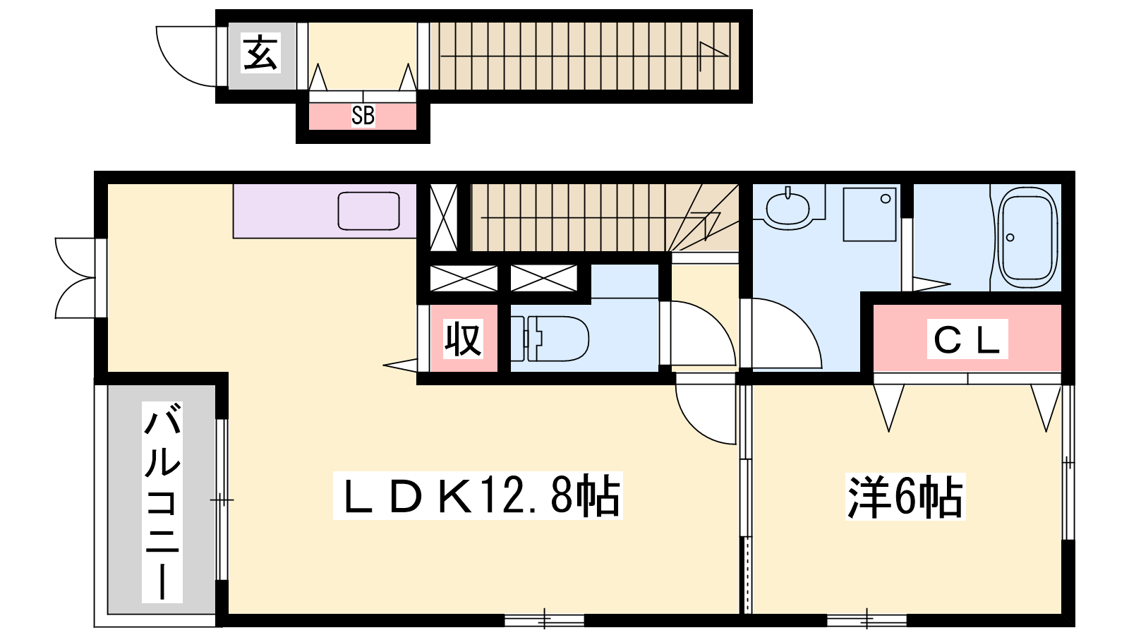 - LDK12.8帖、洋室6帖