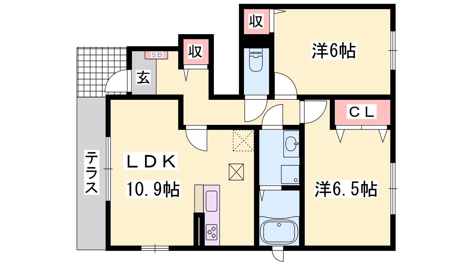 - LDK10.9帖、洋室6帖、洋室6.5帖
