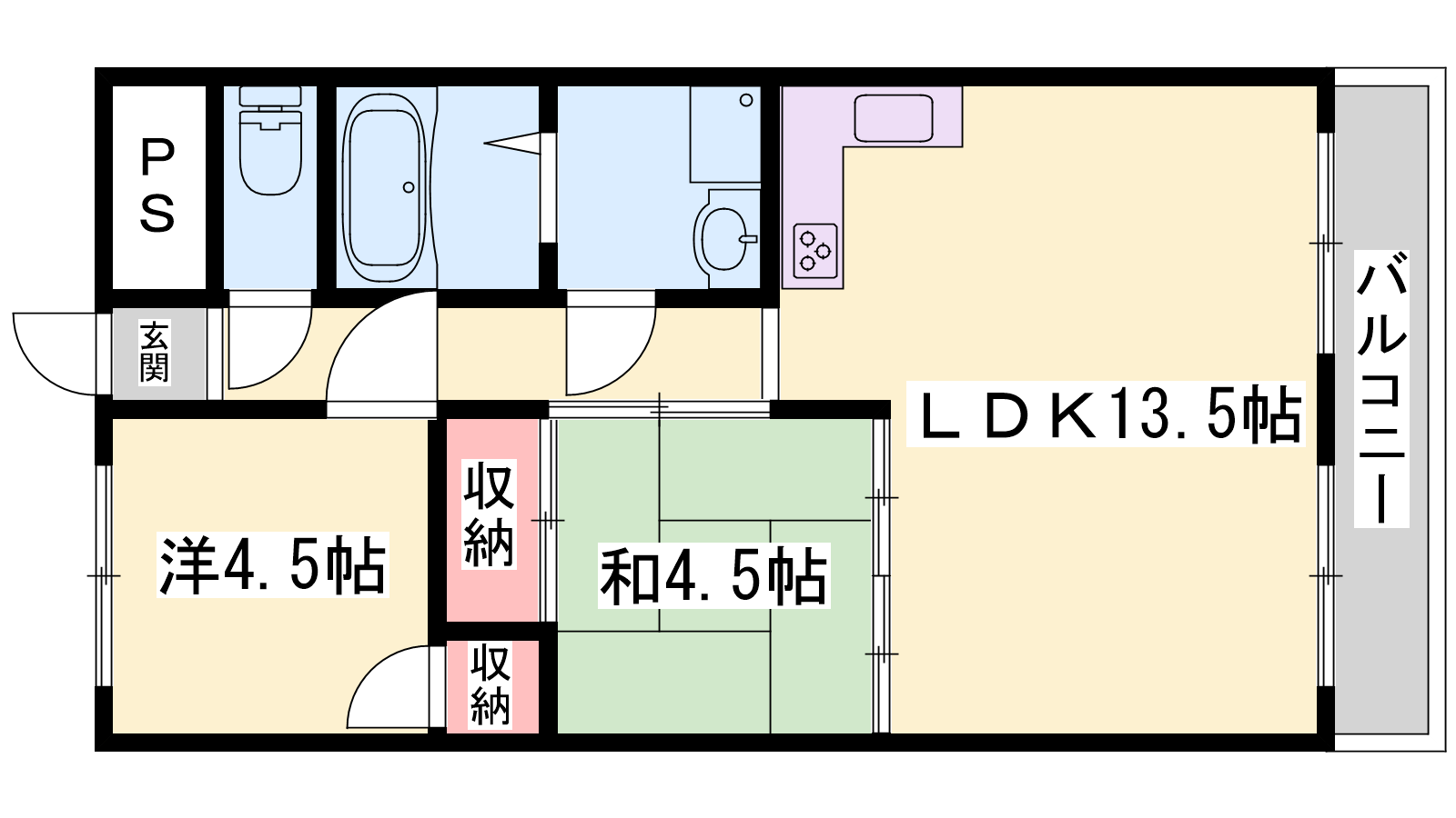 - LDK13.5帖、洋室4.5帖、和室4.5帖