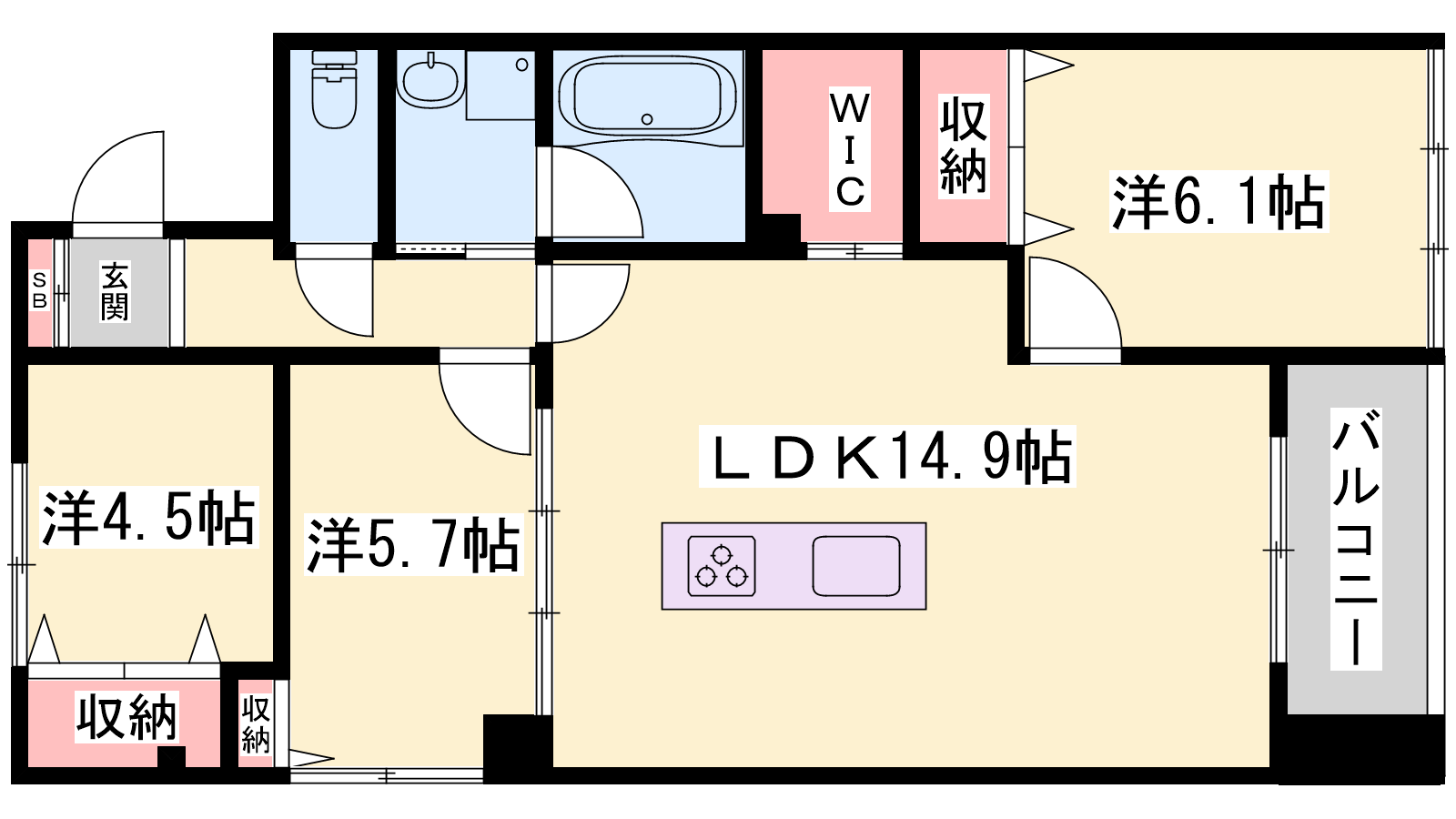 - LDK14.9帖、洋室6.1帖、洋室5.7帖、洋室4.5帖