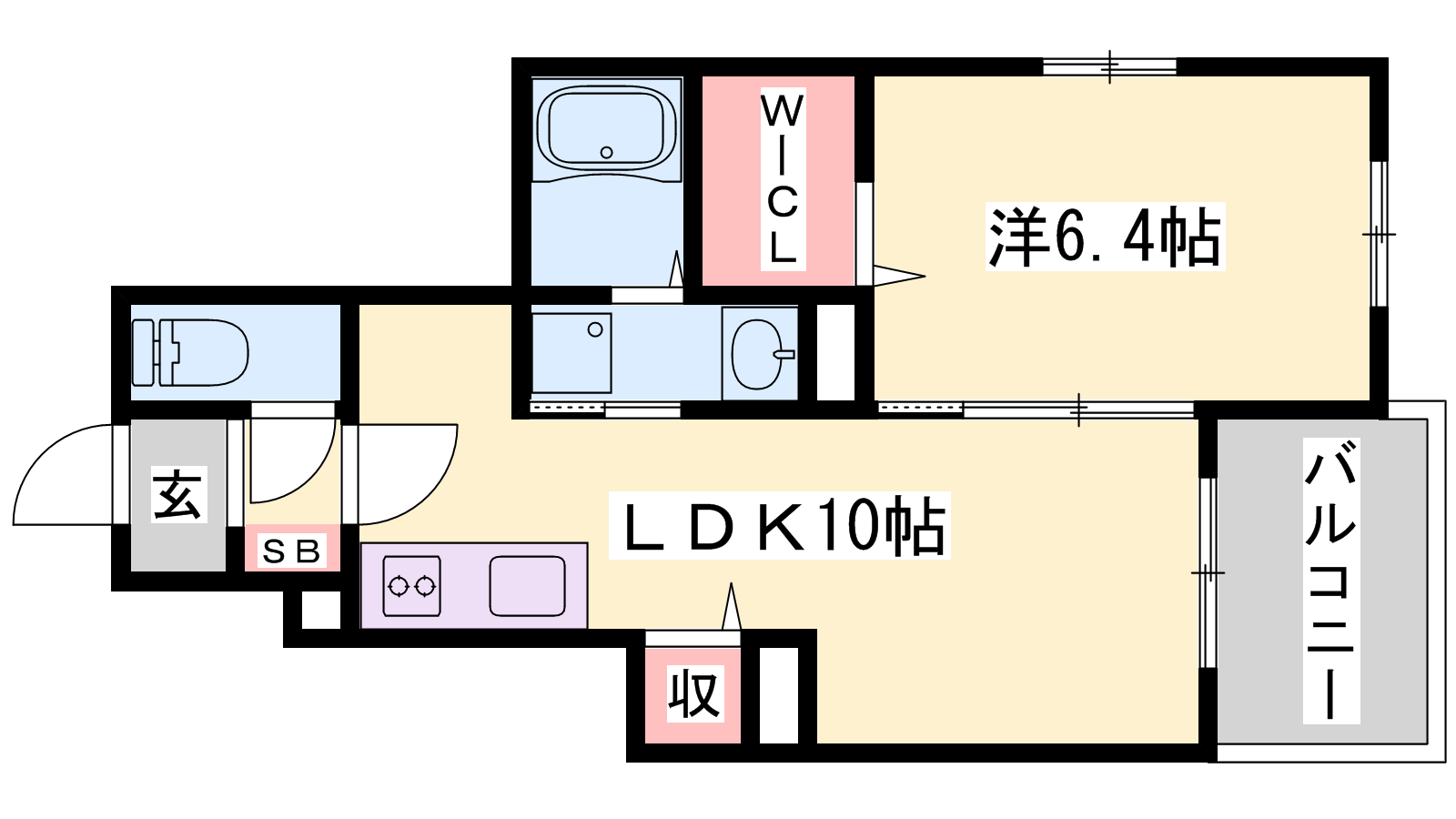 - LDK10帖、洋室6.4帖