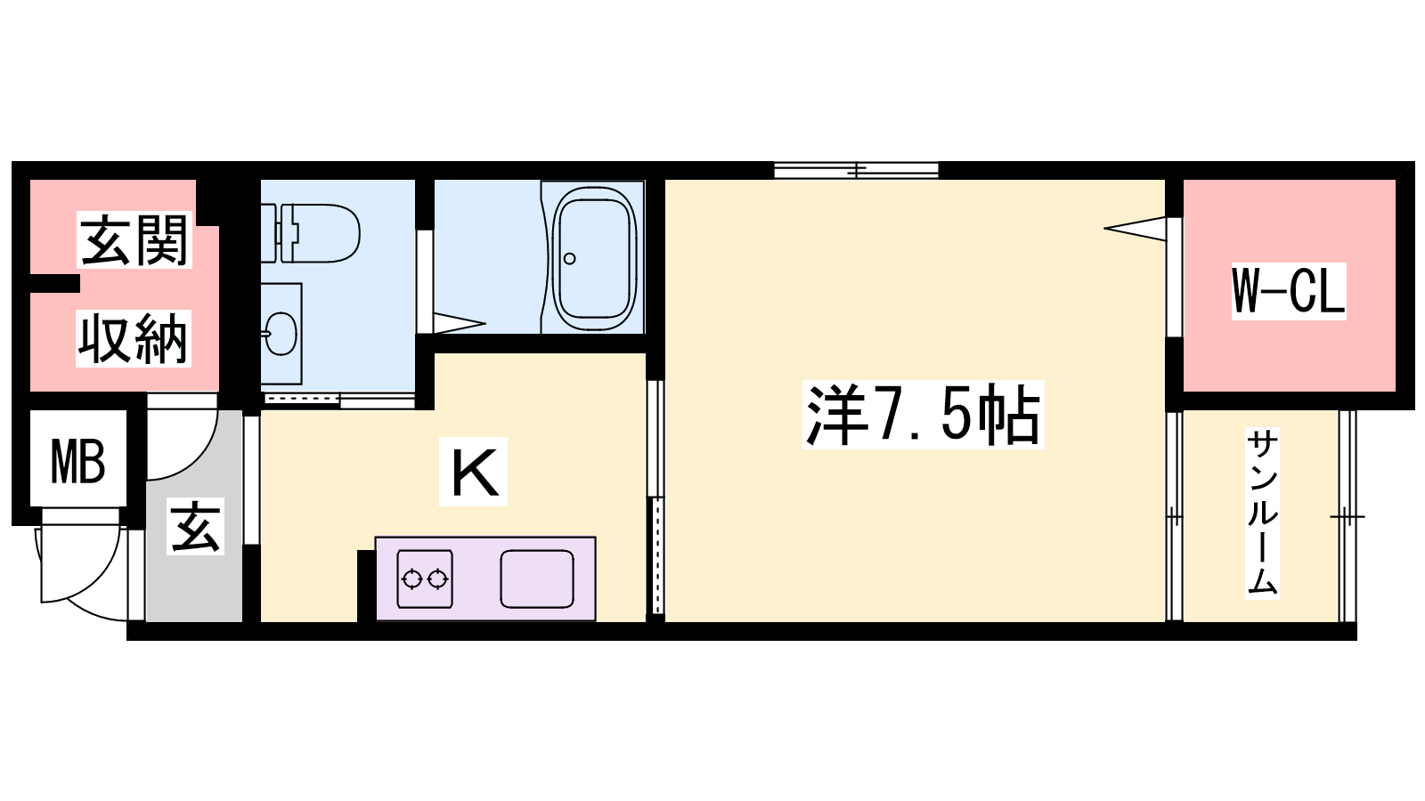 - K2.3帖、洋室7.5帖
